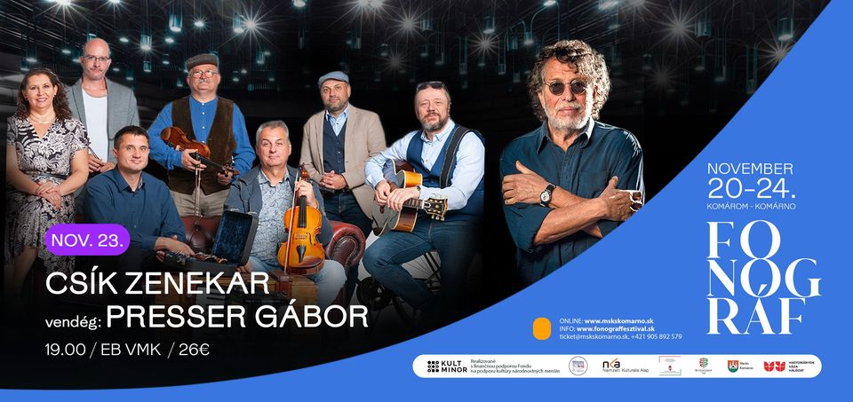 « All Events This event has passed. Fonográf Fesztivál, Csík Zenekar , vendég: Presser Gábor november 23, 2024 / 19:00 - 20:30 « Csík Zenekar, vendég: Presser Gábor (Ráadás koncert) Csík Zenekar koncert » Details Date: november 23, 2024 Time: 19:00 - 20:30 https://www.facebook.com/events/488653353979381 Venue Komárom